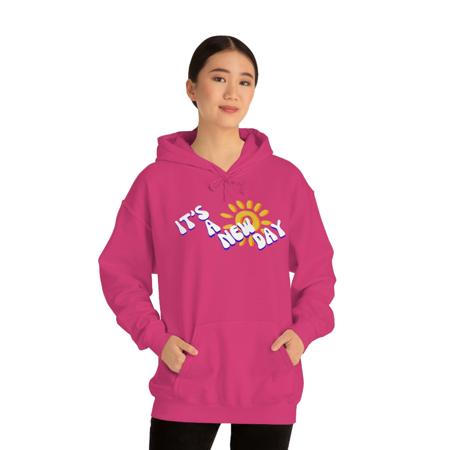 This unisex heavy blend hooded sweatshirt is relaxation itself. Made with a thick blend of cotton and polyester, it feels plush, soft and warm, a perfect choice for any cold day. In the front, the spacious kangaroo pocket adds daily practicality while the hood's drawstring is the same color as the base sweater for extra style points.
