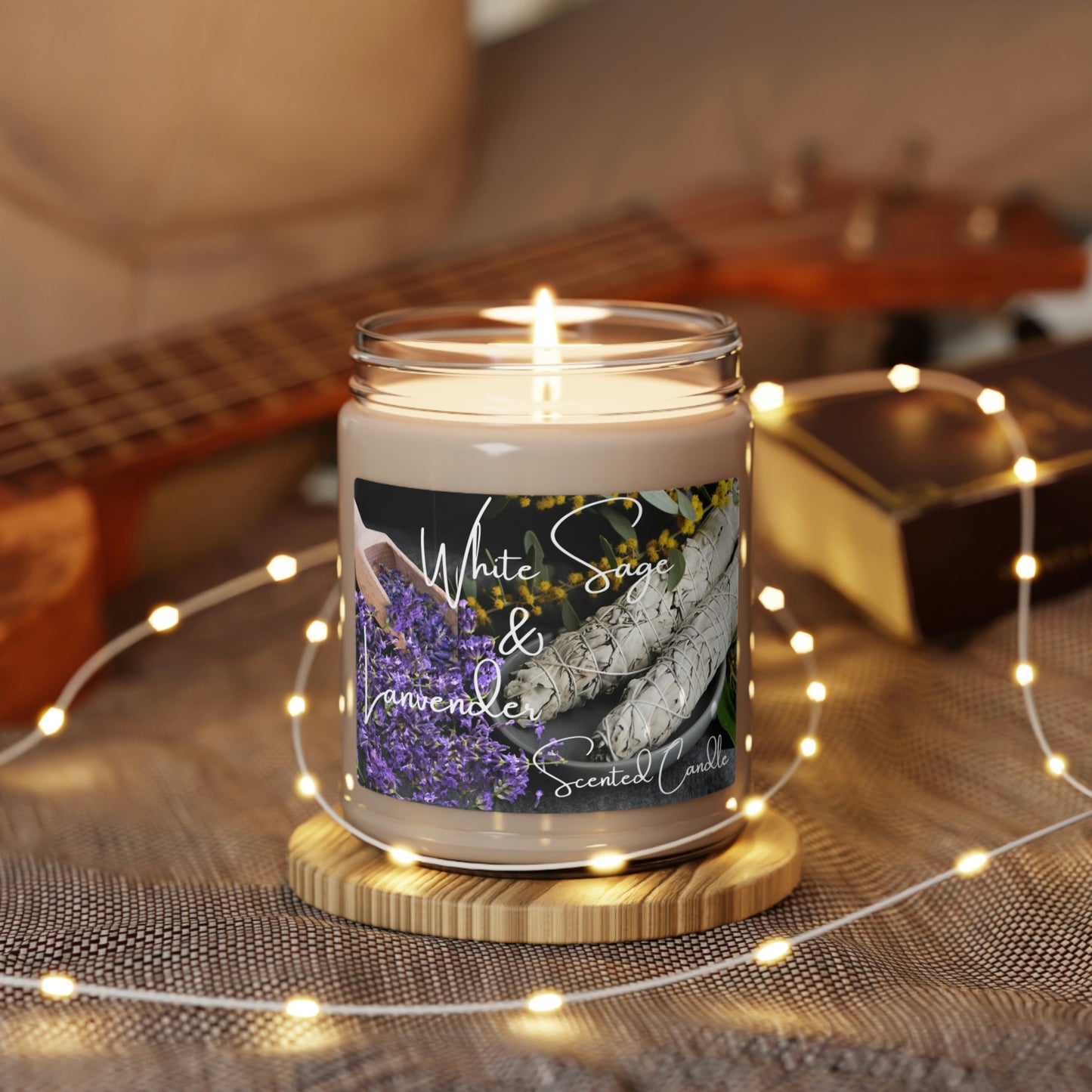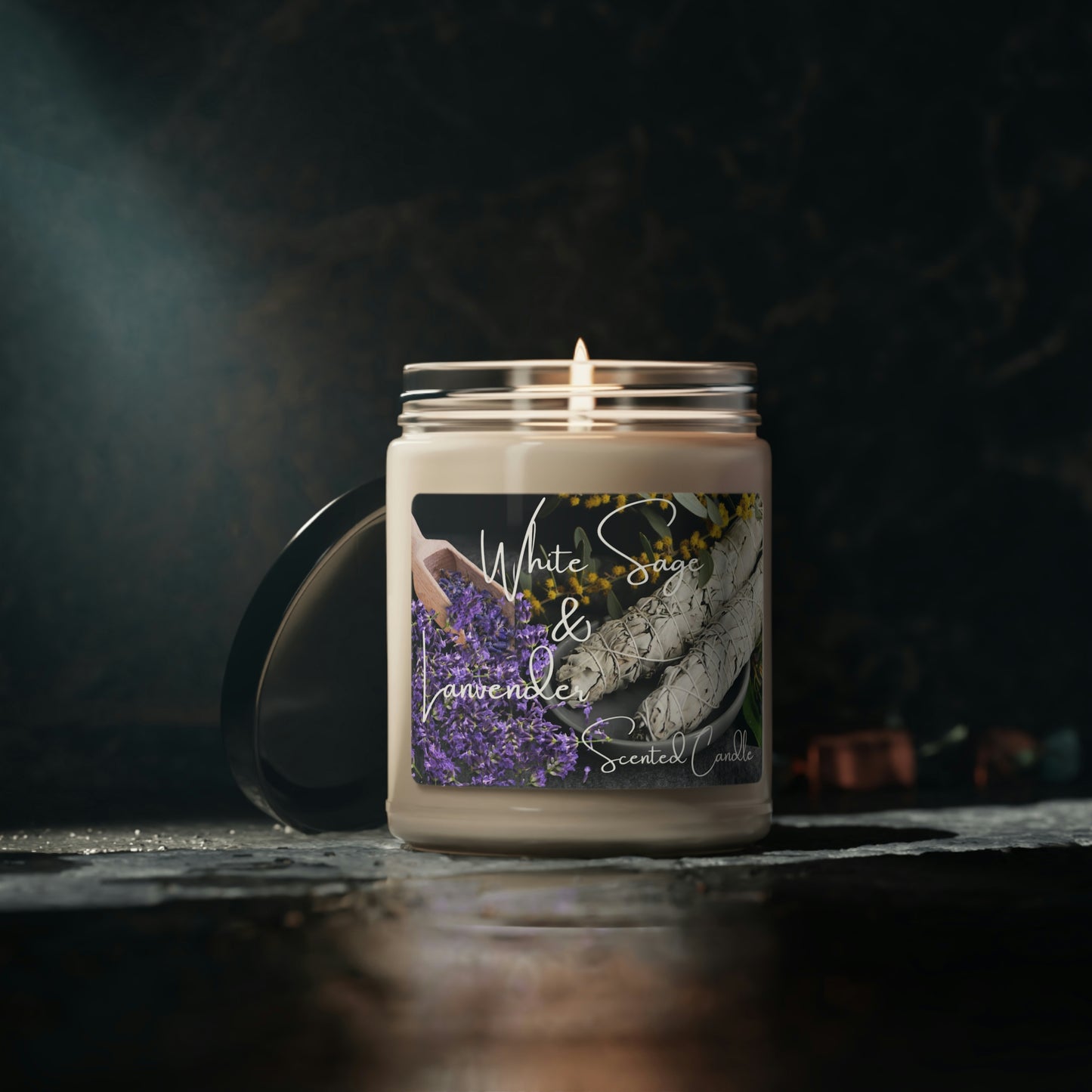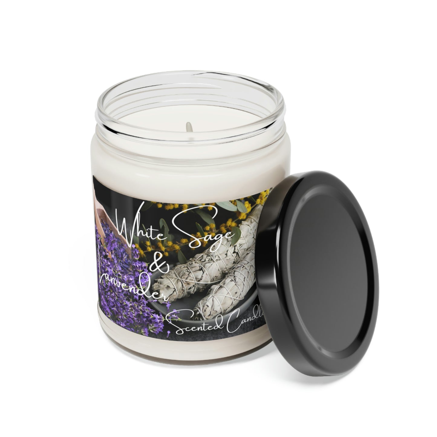 White Sage and Lavender Scented Soy Candle, 9oz
